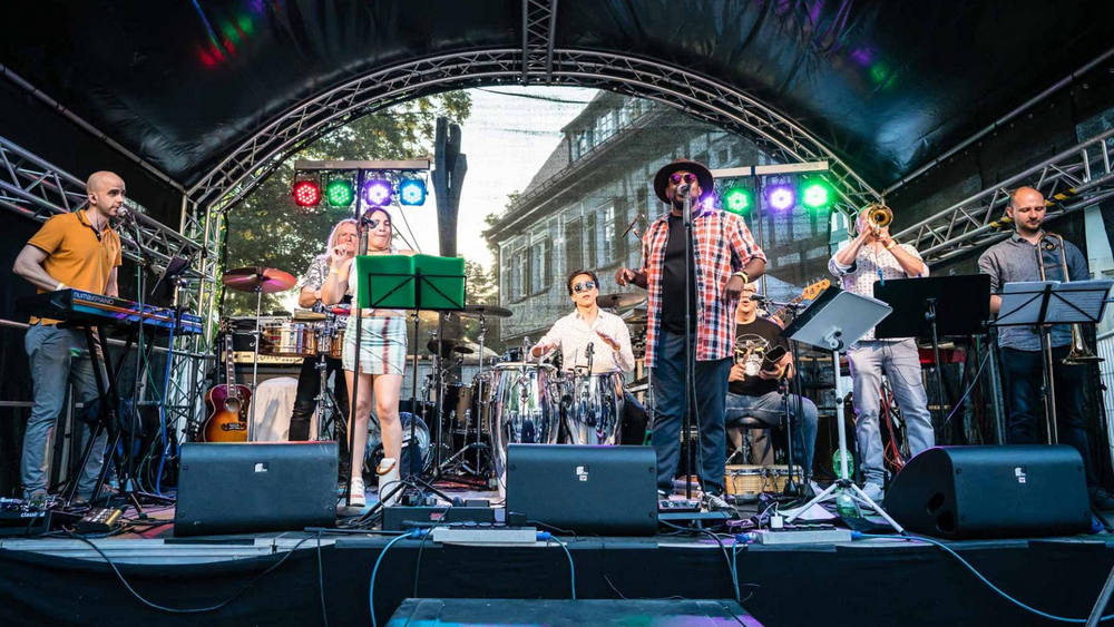 Aktuelle Besetzung zählt: keys,bass,timbales,conga,bongo,2xvoc,sax